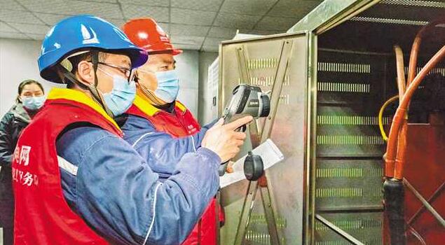 構筑群防群治嚴密防線 堅決打贏疫情防控阻擊戰——1月28日,巫山供電公司紅巖共產黨員服務隊工作人員在當地醫院對供電設施進行測溫檢查。通訊員 王忠虎 攝
