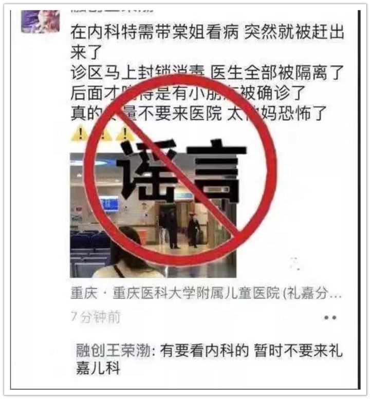 謠言:重慶市兒童醫院禮嘉分院有確診病例,醫生全被隔離
