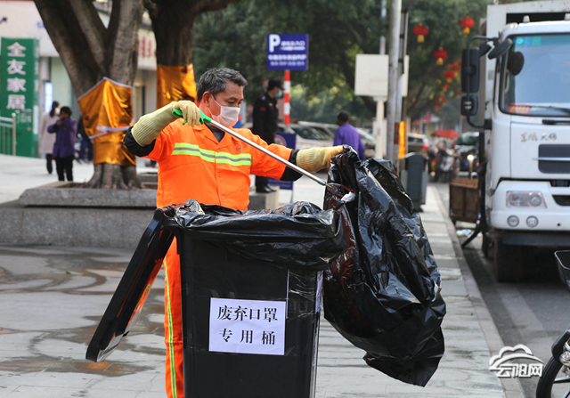 “我們在全縣人口密集場所和地點均設置了廢棄口罩專用垃圾桶,處理過程中,垃圾收運人員須穿戴好環衛工作服、口罩、手套,用夾子將廢棄口罩集中收集到垃圾袋內進行密封后,再放入專用垃圾運輸車。”縣城管局環衛所清掃清運大隊大隊長盧延澤告訴記者,垃圾收運人員每天收運三次,收運完廢棄口罩后,將對清理后的專用垃圾桶進行消毒,然后再對專用垃圾桶進行重新布袋。