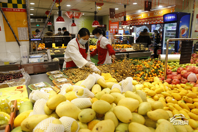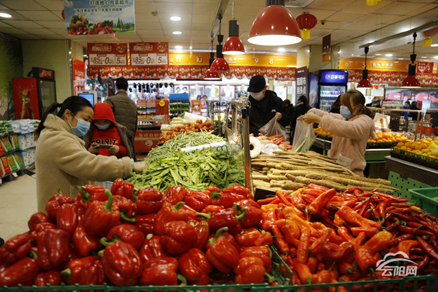在新世紀超市云陽店,記者看到大米、食用油、面條等生活必需品均被擺放在最顯眼的位置,種類齊全,各類商品的供應均能滿足市民的正常生活需求,吸引了不少戴著口罩的市民前來選購。新世紀超市云陽店相關負責人王玉輝告訴記者,現在整個超市的供應,保證一個平穩的狀態,同時,超市每天為市民供應新鮮的果蔬、肉類等。據了解,受肺炎疫情的影響,這段時間市民對生活物資的需求有所增加。得益于春節前各大超市已經準備了相當數量的庫存,加之物流恢復了配送,各種生活必需品都可以做到不漲價、不脫銷、不斷檔,市民可安心采購。對于不方便外出的市民,還可以通過各種線上途徑進行采購,一個小時左右物資就可以送到市民家門口。