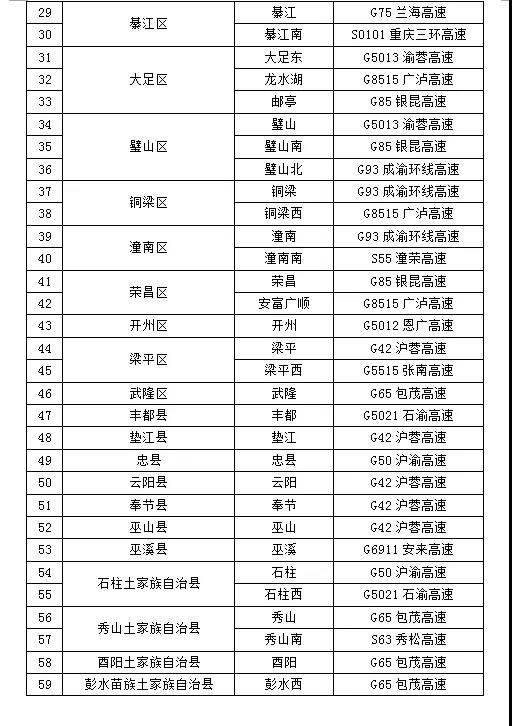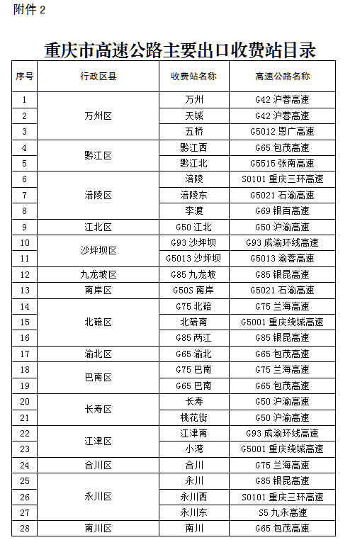2. 重慶市高速公路主要出口收費(fèi)站目錄