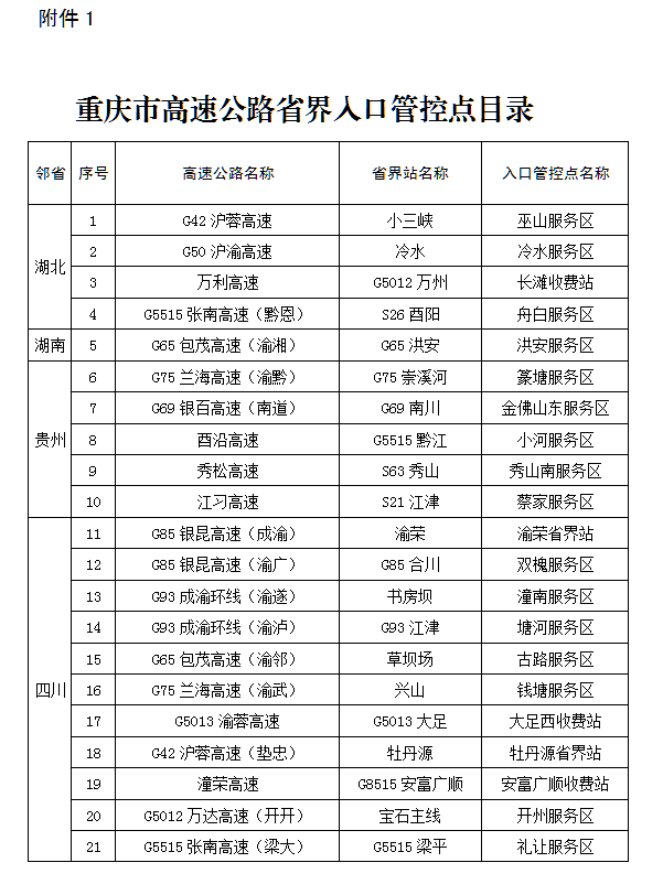附:重慶市高速公路省界入口管控點(diǎn)目錄
