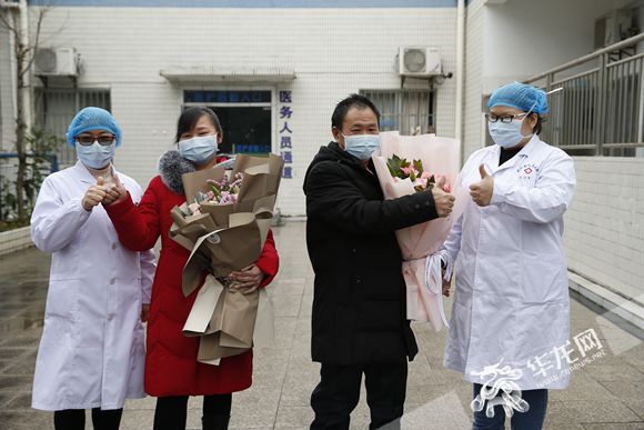 2月2日,巫山縣人民醫院,2例新型冠狀病毒感染的肺炎確診患者治愈出院。華龍網-新重慶客戶端記者李文科攝