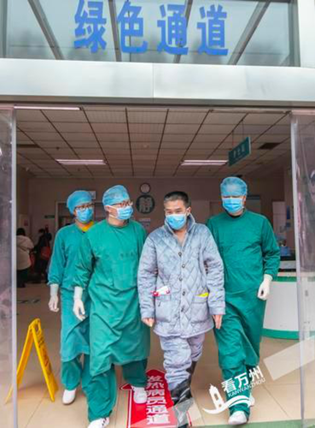 患者張某,男,52歲,重慶云陽人,2020年1月16日出現(xiàn)反復(fù)發(fā)熱、干咳、乏力,1月20日從武漢自駕返渝,1月21日到云陽縣人民醫(yī)院就診即被收治入院。1月23日,根據(jù)臨床癥狀和檢測結(jié)果,被確診為新型冠狀病毒感染的肺炎患者。1月24日,因患者病情加重,轉(zhuǎn)入重慶三峽中心醫(yī)院集中救治,在醫(yī)護人員悉心救治下,病情逐步好轉(zhuǎn),經(jīng)重慶市、區(qū)兩級醫(yī)療救治專家評估,符合新型冠狀病毒感染的肺炎確診病例解除隔離和出院標準,于今日治愈出院。