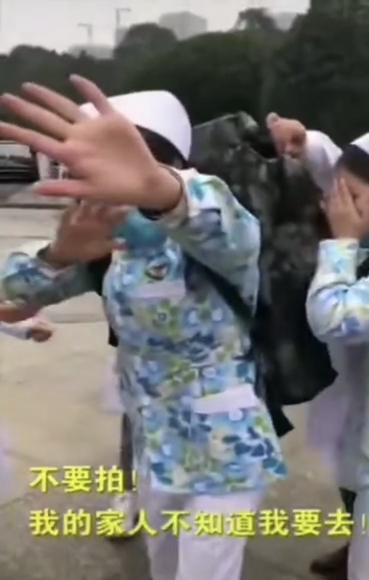 “不要拍!我的家人不知道我要去!”重慶市江津區中醫院廣場前,看到鏡頭,兩名即將出征的護士妹妹急忙捂住了臉,不想讓家人擔心。 受訪醫院供圖 華龍網發