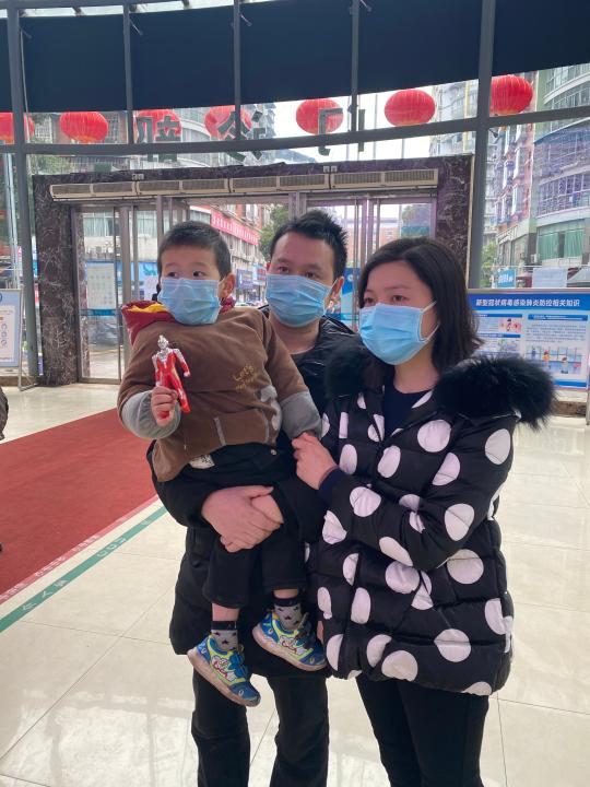 墊江縣人民醫院重癥醫學科江慢出征前,和老公孩子照了張團圓照。 受訪醫院供圖 華龍網發