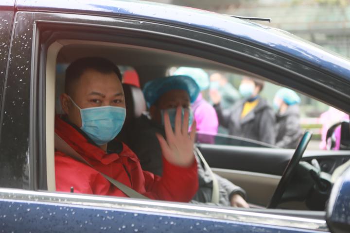 即將出發去機場,綦江區人民醫院的急診醫學科醫生鄧川向車窗外家人揮手道別。 受訪醫院供圖 華龍網發