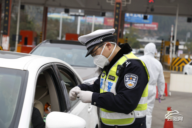 2月2日,重慶云陽高速路口,云陽縣交巡警大隊民警24小時堅守在寒風(fēng)中,配合醫(yī)護人員,對進站口、出站口的旅客進行體溫測試、檢查口罩佩戴情況,并對身份證、駕駛證逐一驗證,努力做到?jīng)Q不漏掉一個。當(dāng)有人問及怕不怕時,民警們總是淡然回答:“怕,哪有不怕的,上有老下有小的。”但是,他們又異常堅定:“這場防疫阻擊戰(zhàn)中,我們就是‘防火墻’,放走的病毒越少,白衣天使面對的‘?dāng)橙恕驮缴伲瑖婪浪朗卮蜈A這場戰(zhàn)爭,是我作為民警的責(zé)任。”