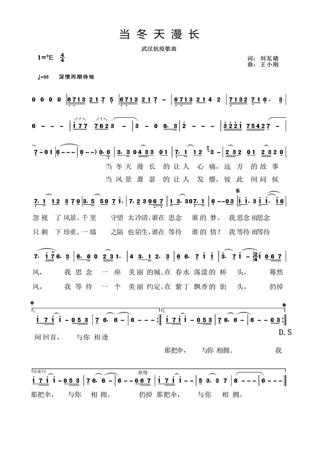 “當冬天漫長得讓人心痛,遠方的故事忽視了風景……我思念雨思念風,我思念一座美麗的城,在春水蕩漾的橋頭,驀然回首,與你相逢……”歌詞所描述的不單單是一個人的思念、一個人的等待,也是萬眾的思念、萬眾的等待,曲調(diào)深沉、壯闊,扣人心弦,激勵人們眾志成城,攜手打贏這場疫情防控阻擊戰(zhàn)。