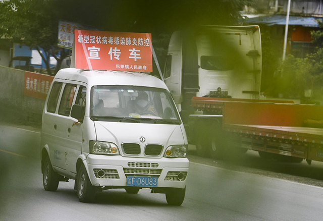 2月4日,通過車載廣播進行疫情防控宣傳的車輛行駛在重慶市云陽縣巴陽鎮永利村。 新華社記者王全超攝
