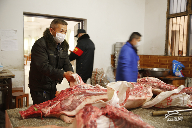 鄒興平和他的同伴將宰殺好的兩頭肥豬抬進食堂放好后立即轉身離開,他并不想讓別人知道他的善舉,街道職工也只拍到了他匆忙抬肉的一張照片。走出大門的時候,他還反復強調,不要聲張,他只是在盡自己的一份力量,他說街道的干部職工從大年三十到現在一直都沒休息,大家為了群眾的生命安全,每天奔走在抗疫一線,作為老百姓的他很是感動……