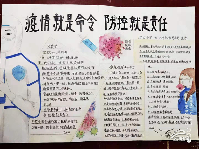 學校組織老師們通過班級QQ群、微信群等多種渠道,向學生和家長們宣傳有關“新冠肺炎”的各種知識以及預防和應對措施。此外,學校還開展了“防控戰‘疫’我先行”的征文比賽和手抄報比賽,并委派學生們作為家庭預防戰線中的宣講員和守門員,主動承擔把守門關的重任,向家中的父母和老人發出預防倡議——“呆在家里就是對社會最大的貢獻”。