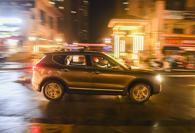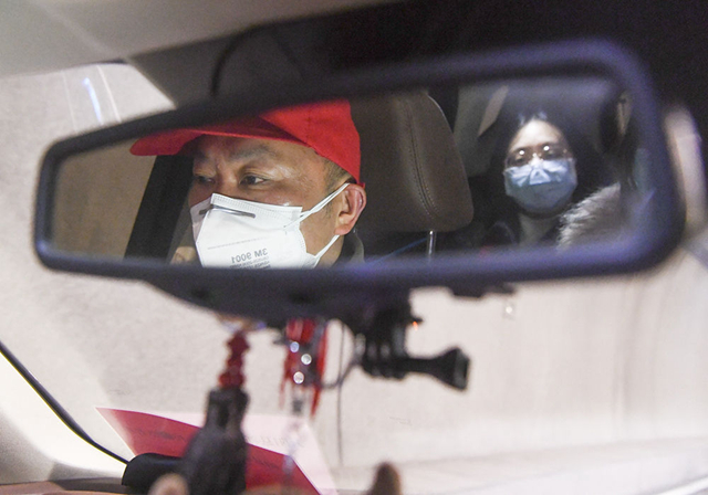 ↑2月6日晚,郭高平開車送云陽縣人民醫院醫務人員上夜班。新華社記者 王全超 攝
