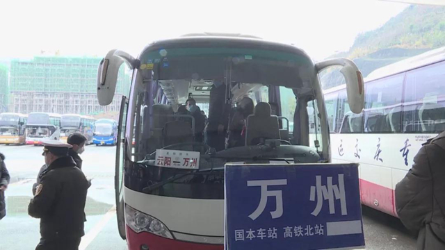 2月7日起,云陽至萬州高鐵北站應急運力開通。此次開通的班次開行時間從每天上午9點到下午5點,實行滾動定點發車模式。云陽汽車客運站副經理成仕軍介紹:“滾動定點發車意思就是,比如早上9:00開始發車,到站的旅客如果說多的話我們就發車,如果說不多就適當延遲一下。”