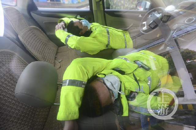 累了,執法隊員們就在車里打個盹,稍作休息后再繼續返回崗位。