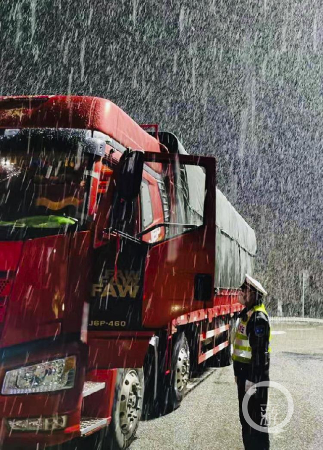 高速執法隊員們在雪中連夜值守是常事。