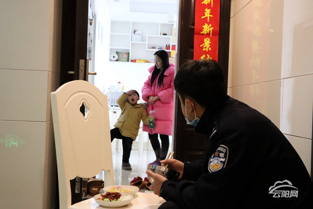 當(dāng)天,譚元華好不容易有空回家拿換洗衣服,走到家門(mén)口卻停下了。吃飯時(shí),譚元華的妻子把他最愛(ài)吃的香腸和米飯端了出來(lái),等妻子回到屋里后,譚元華才蹲坐在門(mén)口的小板凳上開(kāi)始吃飯。這次的團(tuán)聚很簡(jiǎn)單,妻子和孩子看著他狼吞虎咽,妻子時(shí)不時(shí)問(wèn)問(wèn)最近的情況,孩子不停地和他說(shuō)著最近的新玩具,這短短的兩米,正是最長(zhǎng)的深情。