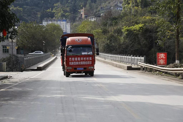 云陽網訊(記者 王彬彬 趙曉龍)2月7日,一輛貼著“巴陽鎮陽坪村村民抗新型肺炎捐贈紐荷爾”標語的大卡車緩緩朝著滬蓉高速云陽收費站疫情檢測點駛來,幾名村民下車,把新鮮的紐荷爾交到執勤民警手中。