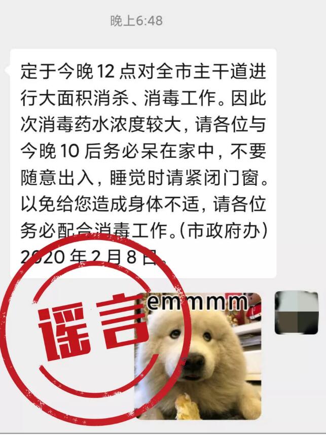 謠言1:今晚12點全市主干道大面積消殺消毒