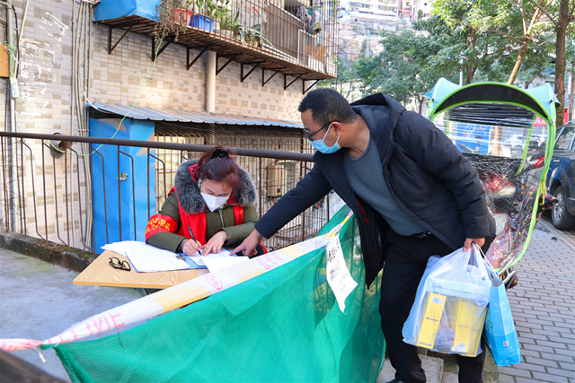 “這條路封了,沒事不要出來走動,進出憑通行證走大門。”2月9日,社區(qū)組織人員對樓道進行物理隔離,兩個樓棟只留一個進出通道,安排志愿者和網(wǎng)格員進行三班倒的方式值守,一律不準外來人員入內(nèi),本樓棟居民也發(fā)放了出入卡,確保每個樓棟居民的安全。