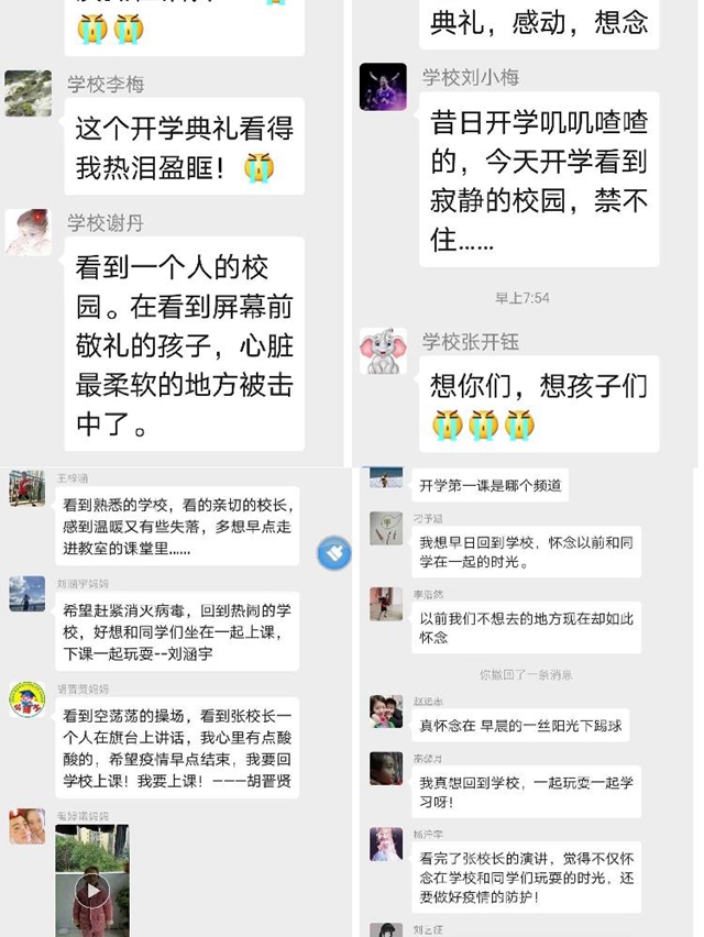 “看到空蕩蕩的操場(chǎng),看到張校長(zhǎng)一個(gè)人在旗臺(tái)上講話,我心里酸酸的,希望疫情早點(diǎn)結(jié)束,我要回學(xué)校上課!”同學(xué)胡晉賢通過(guò)媽媽的手機(jī)留言道。許多老師和家長(zhǎng)也紛紛留言:這場(chǎng)升旗儀式看得我熱淚盈眶。