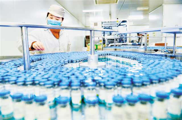 2月10日,位于兩江新區的重慶華邦制藥無菌制劑生產區,工作人員正在外包裝線忙碌。