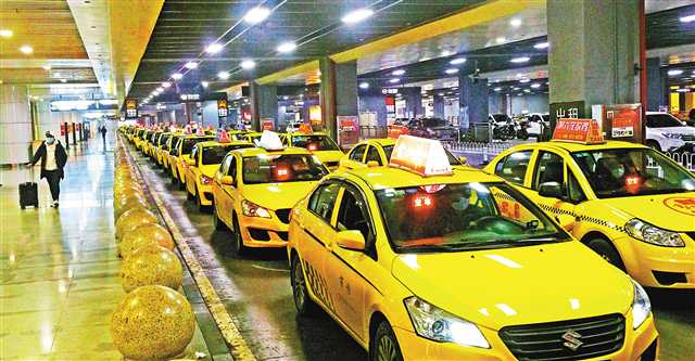 2月10日,重慶火車北站,巡游出租車排隊等候返程旅客。當日,我市巡游出租車全部復工投入營運。特約攝影 鐘志兵