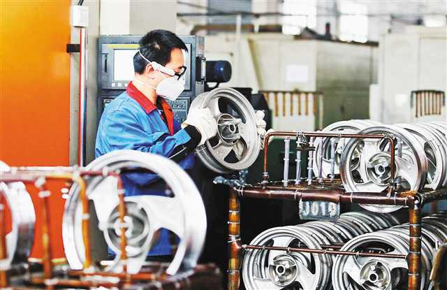 2月10日,位于墊江縣工業園區的捷力輪轂制造有限公司,工人正在檢測產品。在做好疫情防控工作后,該公司開始有序復工復產。通訊員 向曉秋 攝