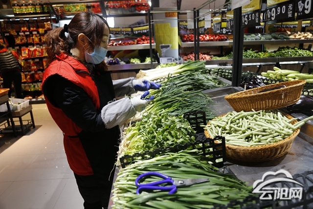 云陽網訊(記者 王彬彬)2月11日,記者在中環路“超前購物中心”生活超市看到,各類食材應有盡有,超市工作人員正在挑選即將配送的蔬菜。
