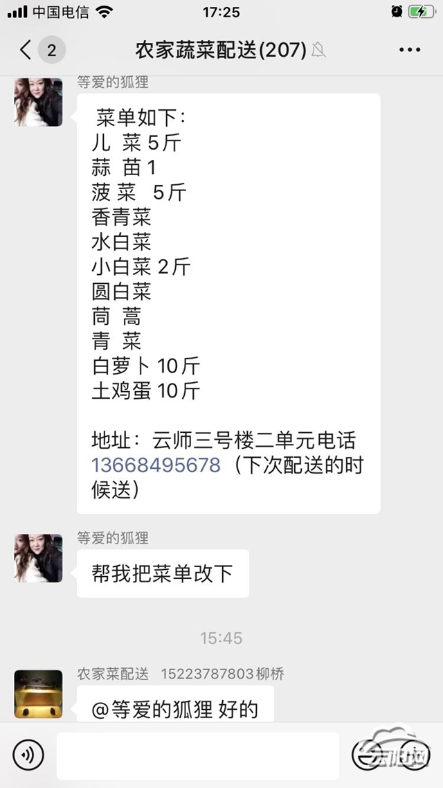 云陽網(wǎng)訊(記者 王彬彬 通訊員 謝蜀云)“小草的訂單:兒菜2斤,蒜苗1斤,小白菜2斤,白蘿卜10斤。地址:碧水藍(lán)天。電話:……”
