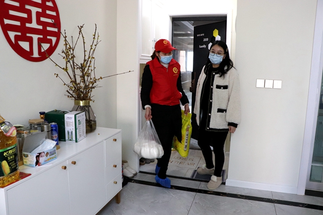 活動中,志愿者們采購了米面油和蔬菜等生活必需品,送到一線醫務人員家中,詢問醫護人員家屬是否還需要幫助。李金山是縣人民醫院感染科的一名醫生,妻子溫思琳懷孕6個多月。疫情發生后,李金山從大年初二起就沒有回過家,家中只有溫思琳和她的婆婆,外出和生活極為不便。志愿者在得知這一情況后,主動聯系她們,并提供幫助。