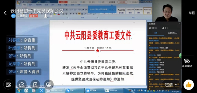 云陽(yáng)網(wǎng)訊(通訊員 張慶華)2月12日,初一中黨支部召開疫情防控工作推進(jìn)會(huì)。全體黨員收看了釘釘直播會(huì)議。
