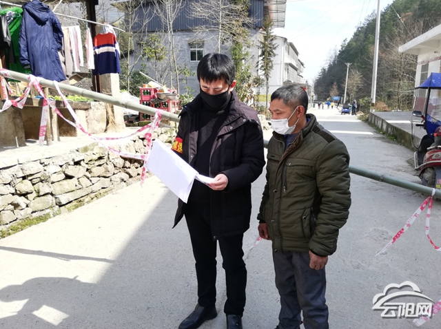 “快回去、快回去,這里封路了,車子不能進村?!痹谠脐柨h盤龍街道雙龍村1組交通執(zhí)勤點,81歲的黃佐亮老人戴著紅袖章和白口罩,正在勸返一輛進村的小汽車。