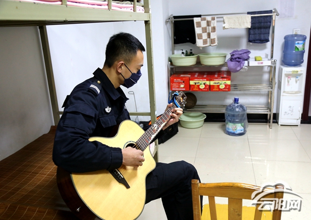 今年24歲的胡創(chuàng)在2015年退伍回到云陽加入縣特警大隊(duì)。在疫情防控時(shí)期,他和他隊(duì)員們沖在防控第一線,開展巡邏勸導(dǎo)、緊急救援等任務(wù),保衛(wèi)人民群眾生命安全。業(yè)余時(shí)間,胡創(chuàng)喜歡拿起吉他,彈上一曲,為隊(duì)友們舒緩疲憊的身體,談笑聲和吉他優(yōu)美音樂不時(shí)陣陣傳出。