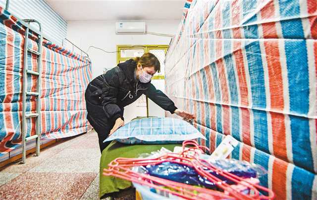 2月14日,重慶三峽醫藥高等專科學校,教職工志愿者在騰空后的學生寢室布置簡易病床。記者 龍帆 攝