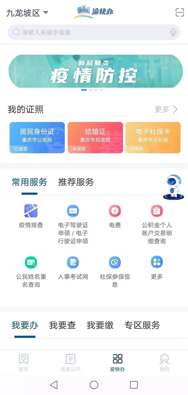 “為了給企業(yè)和群眾提供優(yōu)質(zhì)高效的服務(wù),我特別向大家推薦‘渝快辦’上新推出的欄目——疫情防控專欄。市民在市政府的APP里點(diǎn)開‘渝快辦’即可瀏覽?!宾膹?qiáng)介紹,點(diǎn)開疫情防控專欄,里面就有兩大類四個方面、20多項(xiàng)服務(wù)。其中,第一類主要是信息傳遞,第二類是排查、調(diào)查類。