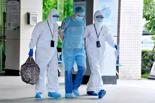 ▲2月15日下午,海南省東方市新冠肺炎確診患者張某智在海南省傳染病醫(yī)院治愈出院,因涉嫌以危險方法危害公共安全罪被東方市公安局依法采取強制措施。(海南省傳染病醫(yī)院供圖)
