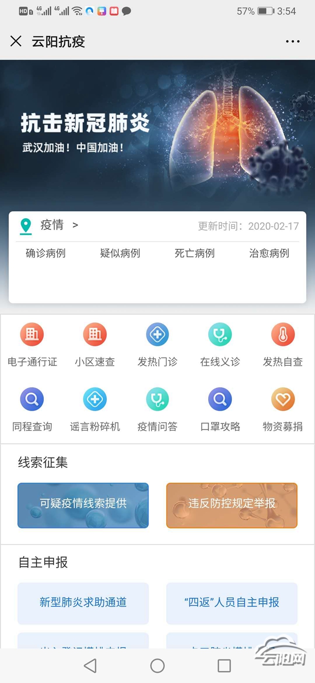 值得一提的是平臺(tái)面向普通用戶、企業(yè)用戶、街道社區(qū)、小區(qū)物業(yè)等類型用戶,開發(fā)了“全民抗疫””微信公眾號(hào)以及微信端鏈接,提供出入登記、線索征集、自主申報(bào)和求助通道權(quán)限;提供企業(yè)防疫專欄、政府通告、復(fù)工申請(qǐng)、