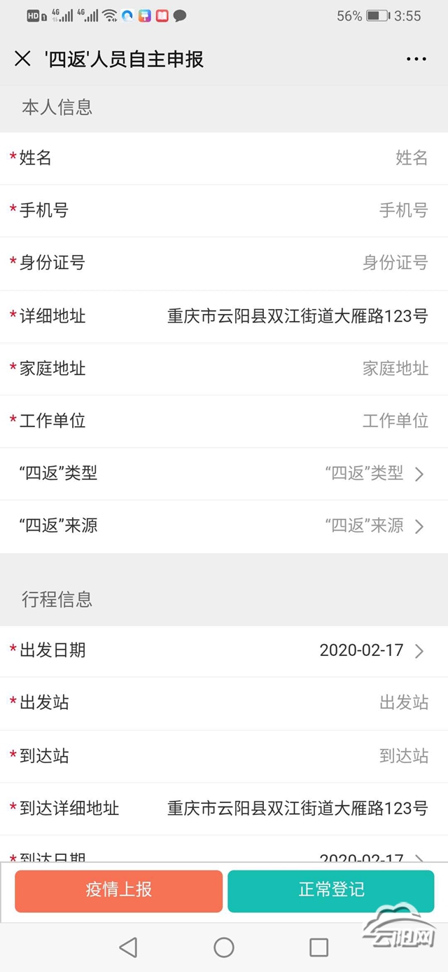 公眾號(hào)匯集了全縣村(社區(qū))疫情管控的核心功能,一張二維碼形式的電子通行證,涵蓋了人員健康打卡、體溫登記等健康數(shù)據(jù)監(jiān)測(cè)、人員通行數(shù)據(jù)記錄、異常數(shù)據(jù)預(yù)警等功能。據(jù)移動(dòng)公司開發(fā)人員介紹,公眾號(hào)上為居民用戶端、管理員用戶端。在居民用戶端,居民只需要通過手機(jī)微信掃描“云陽抗疫”的二維碼,在線填入自己的姓名、手機(jī)號(hào)、身份證號(hào)、具體住址、健康狀態(tài)等信息,下次再進(jìn)出小區(qū)只需掃碼填入實(shí)時(shí)測(cè)量的體溫即可;管理員用戶端后臺(tái)能夠生成包括業(yè)主姓名、聯(lián)系電話、出入時(shí)間等內(nèi)容的小區(qū)人員出入的明細(xì)表和包括小區(qū)名稱、當(dāng)天出入人數(shù)等信息的區(qū)域內(nèi)各社區(qū)的總表,使社區(qū)(村)管理人員全面掌握進(jìn)出人員的基本信息和進(jìn)出社區(qū)情況。
