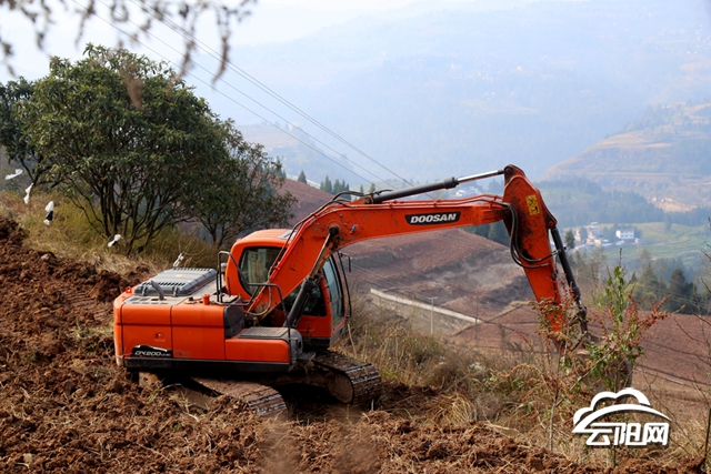 在太地村,多臺挖掘機轟隆隆工作著,40余公頃土地已經(jīng)翻土完畢,等待栽植桑苗。