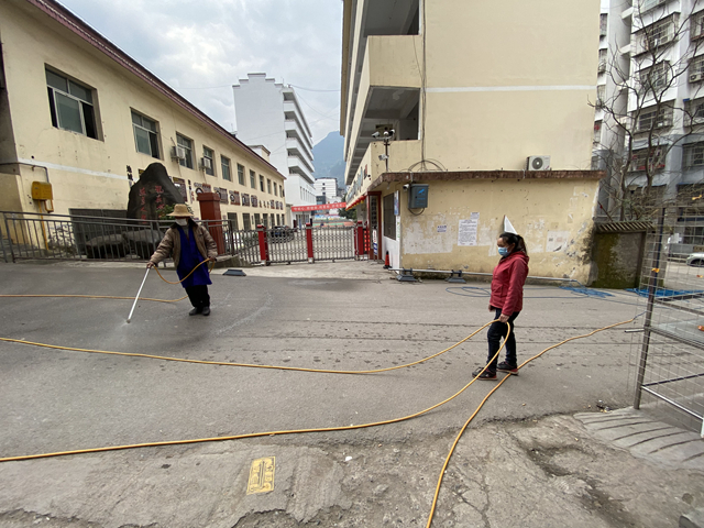 全面消毒有奇招,工具來自百姓家。長洪社區聘請12人,租用2臺小車負責整個社區全面消毒工作,預計完成三輪地毯式消毒,目前已完成1輪,正在進行第2輪。為高效完成消毒作業,社區工作人員向本社區農業種植戶借用農藥噴撒用具,雙管齊下。首先采用本地農用長管式霧化噴槍,其由四根長約200米的細管組成,2人協作可從社區主干道延伸至各個小道實施道路網面式播撒消毒水;其次針對無法觸及的死角,采用小型背式混合噴霧壺進行查漏補缺。