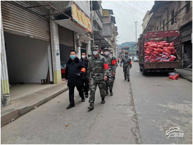 為能讓該支隊伍發揮最有效的作用,該鎮政法書記、武裝部長親自帶領這支巡邏隊伍,重點對場鎮上聚集的人員進行疏散,對路面上道路交通違法行為進行查處,對亂擺攤點的經營戶進行勸說,對未帶口罩在路上行走的人員進行制止勸告。