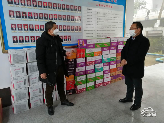 云陽網訊(通訊員 易守菊)2月21日,水口供銷社負責人廖成建為水口鎮政府一線工作人員送去60件康師傅方便面、娃哈哈礦泉水、八寶粥以及50公斤默科特柑橘,總價值3000余元。