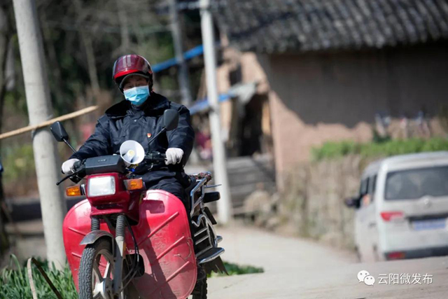 1月29日,云陽(yáng)雙土鎮(zhèn)吉星村。盡管已是初春,陽(yáng)光明媚,但受新冠肺炎疫情影響,大多數(shù)群眾都閑在家里,或在家門口沐浴著春日陽(yáng)光。不過(guò),這里卻有一個(gè)騎著摩托車的忙碌身影,穿行于村中大道小路。摩托車上綁著的一只小喇叭循環(huán)播放著疫情防控知識(shí)和勸誡之語(yǔ):“今天不外出,是為了早日能出門;今天不串門,是為了明天能走動(dòng);今天不扎堆,是為了他日能團(tuán)聚;今天不聚餐,是為來(lái)日能暢飲……”