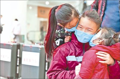 2月21日,重慶市璧山區(qū)人民醫(yī)院,心血管內(nèi)科護(hù)士葉生瀅的8歲大女兒和不滿(mǎn)3歲的小女兒來(lái)為媽媽送行。