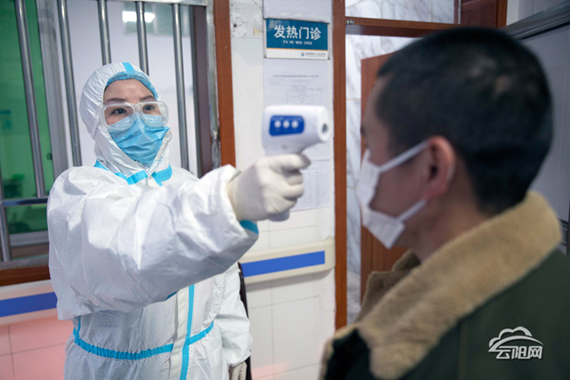“進出人員我都要給他們一‘槍’,不放過任何一個人。預檢分診是把控患者的第一道關(guān)口,一旦漏掉,將會感染更多的人,這個崗位十分重要。”2月20日,高陽鎮(zhèn)衛(wèi)生院護士長、預檢分診負責人付冬英,穿著防護服一邊開玩笑,一邊一絲不茍地在衛(wèi)生院大門口測量每個人的體溫,一刻也沒有停歇,守護好第一道“防護大門”。