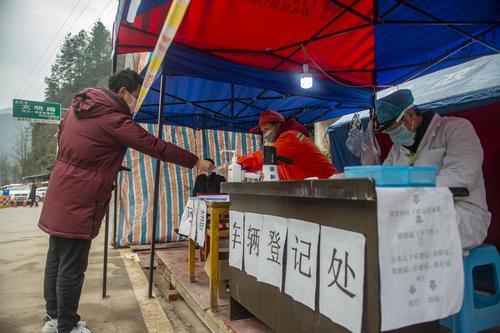 ▲2月14日,萬(wàn)州區(qū)龍駒鎮(zhèn),萬(wàn)州與利川交界的蘇拉口卡點(diǎn),由公安、交通、衛(wèi)生、交警等部門(mén)組成的聯(lián)防聯(lián)控隊(duì)伍正在對(duì)來(lái)往車(chē)輛、人員疫情檢查并登記。記者 龍帆 攝