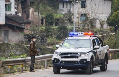 ▲2月14日,萬(wàn)州區(qū)龍駒鎮(zhèn),公安人員在萬(wàn)州與利川交界的蘇拉口卡點(diǎn)巡邏時(shí)對(duì)來(lái)往人員進(jìn)行勸導(dǎo)。記者 龍帆 攝
