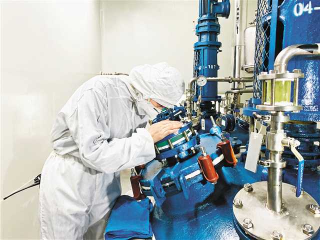 2月24日,位于重慶長壽區的康樂制藥有限公司,工作人員正在生產線工作。該公司在做好疫情防控的前提下,于2月4日逐步復工,加緊生產防疫藥品磷酸氯喹。記者 齊嵐森 攝