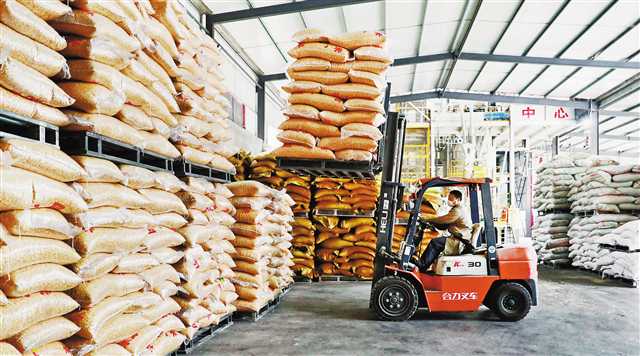 2月24日,酉陽小壩全民創業園一飼料生產企業,員工駕駛叉車搬運原材料。該縣在企業防疫措施到位、部門驗收合格的情況下,組織企業有序復工復產。通訊員 楊春來 攝